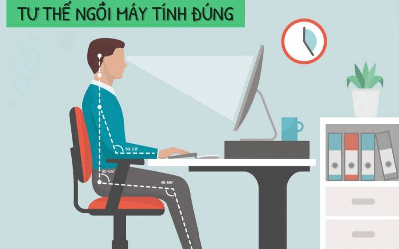 Nên đặt màn hình thấp hơn tầm mắt khoảng 10–20 độ để giảm tình trạng mở mắt quá mức – nguyên nhân gây khô mắt và mỏi cơ vận nhãn. Thiết lập đúng tư thế làm việc giúp giảm áp lực cho đôi mắt trong môi trường làm việc hiện đại.