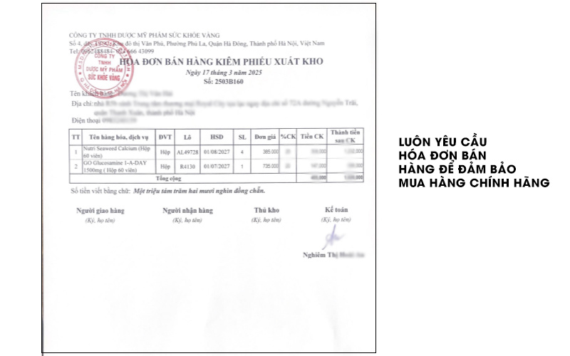 Sản phẩm nhập khẩu chính hãng luôn được xuất hóa đơn bán hàng từ công ty/đơn vị phân phối.