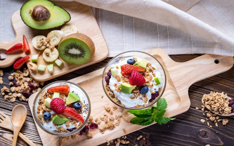 Các lựa chọn tuyệt vời cho bữa sáng bao gồm: bột yến mạch, bánh pudding, ngũ cốc quinoa, granola tự làm với một số loại sữa chua thực vật, sinh tố xanh, trái cây và các loại hạt, bột yến mạch ngâm qua đêm với sữa chua dừa, hoặc thậm chí là một loại nước ép rau tươi.