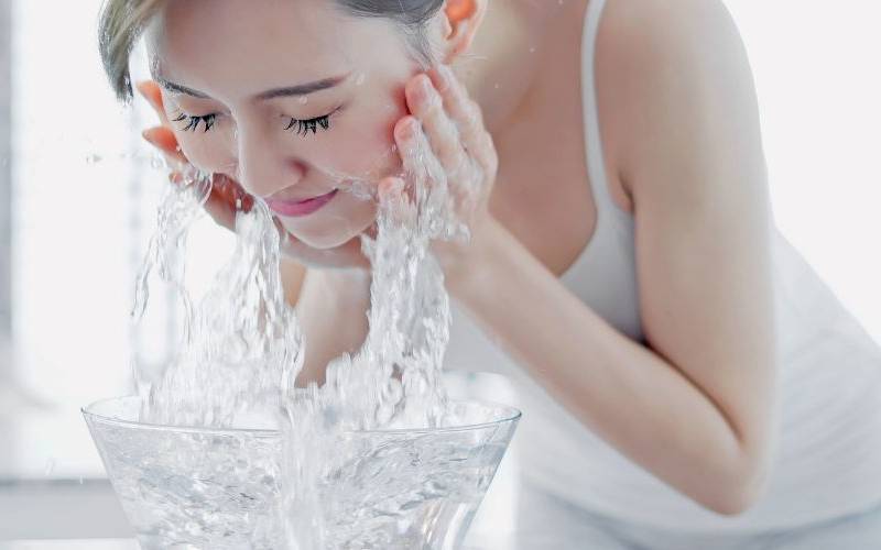 Đầu tiên, hãy làm sạch da mặt bằng nước ấm như bước trên.