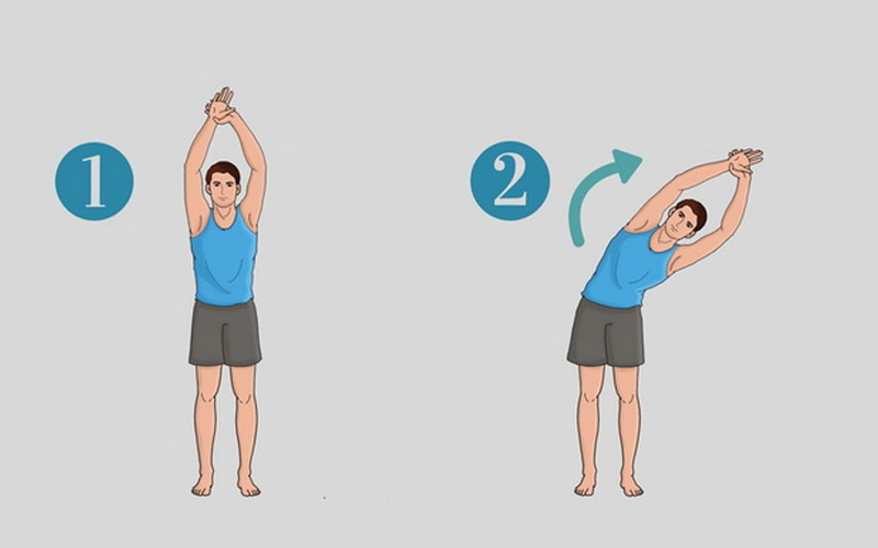 Vươn người lắc sang hai bên để kéo giãn các khớp xương sống.