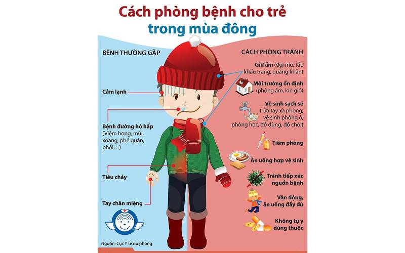 Giữ ấm đầy đủ: Đảm bảo bé được mặc đủ áo ấm, đặc biệt là khi nhiệt độ thay đổi đột ngột.