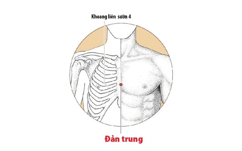 Vị trí huyệt: Nằm giữa ngực, gần tim. Nối đầu sụn sườn thứ IV hai bên gặp đường chính giữa cơ thể, điểm giao nhau là vị trí của huyệt.