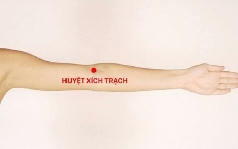 Vị trí huyệt: Gấp nếp khủy tay lại, huyệt ở chỗ lõm bờ ngoài gân cơ nhị đầu cánh tay, bờ trong phần trên cơ ngửa dài, cơ cánh tay trước.
