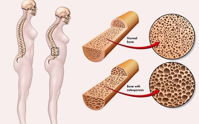 Loãng xương, tăng nguy cơ gãy xương, đau mỏi cơ khớp.