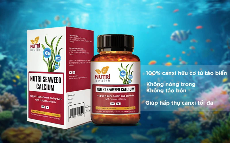Canxi hữu cơ NUTRI SEAWEED CALCIUM là nguồn cung cấp canxi hữu cơ từ tảo biển, kết hợp vitamin K2 và D3 giúp cơ thể hấp thu canxi nhanh hơn, hỗ trợ tăng chiều cao tối ưu và hỗ trợ xương chắc khoẻ. Hàng nhập khẩu chính hãng Nutri Health New Zealand.