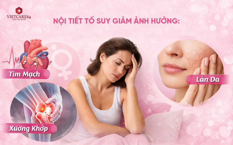 Khi estrogen giảm, cơ thể bắt đầu thay đổi: giấc ngủ nông hơn, da khô và kém sắc, cảm xúc dễ xáo trộn, đôi khi tim đập nhanh mà không rõ lý do. Những biểu hiện này diễn ra âm thầm nhưng đủ làm cuộc sống bị xáo trộn. Về lâu dài, suy giảm nội tiết còn làm tăng nguy cơ tim mạch, loãng xương, thoái hóa khớp và lão hóa da sớm.
