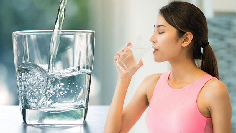Cần bổ sung 2 lít nước mỗi ngày, có thể là nước ép, nước canh và nước lọc,… rất tốt cho làn da, giúp da khỏe khoắn.
