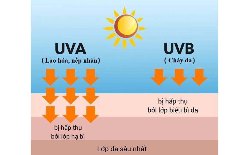 - Sạm da do tia UV: Đây là nguyên nhân chính gây sạm da nếu da không được bảo vệ tốt. Tia UVA/UVB trong ánh nắng mặt trời kích thích sản sinh melanin – một chất quyết định màu da sáng hay tối. Tác động của tia UV khiến da sạm màu không đồng đều, đồng thời còn làm tổn thương da.