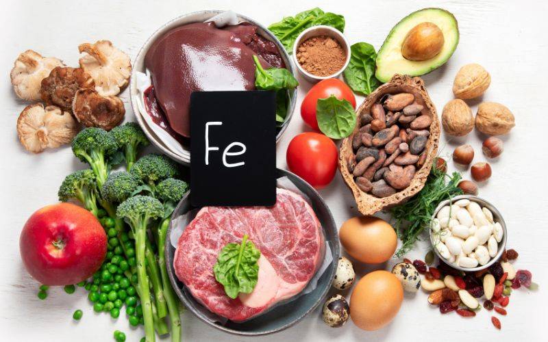Nguồn thực phẩm giàu sắt: Thịt đỏ (thịt bò), gan, tim, bầu dục, lòng đỏ trứng, các loại đậu đỗ.