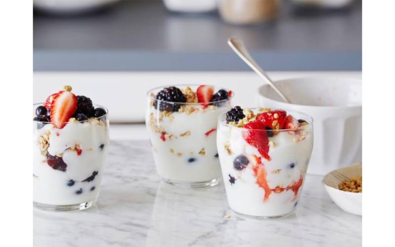 Sữa chua Hy Lạp chứa ít đường hơn các loại sữa chua thông thường nhưng cung cấp một lượng dồi dào protein, men vi sinh, kali, canxi và vitamin B12. Nhờ những thành phần dinh dưỡng kể trên mà sữa chua Hy Lạp trở thành một trong những thực phẩm tốt nhất cho bữa sáng giúp bạn bổ sung năng lượng và tăng sức đề kháng.