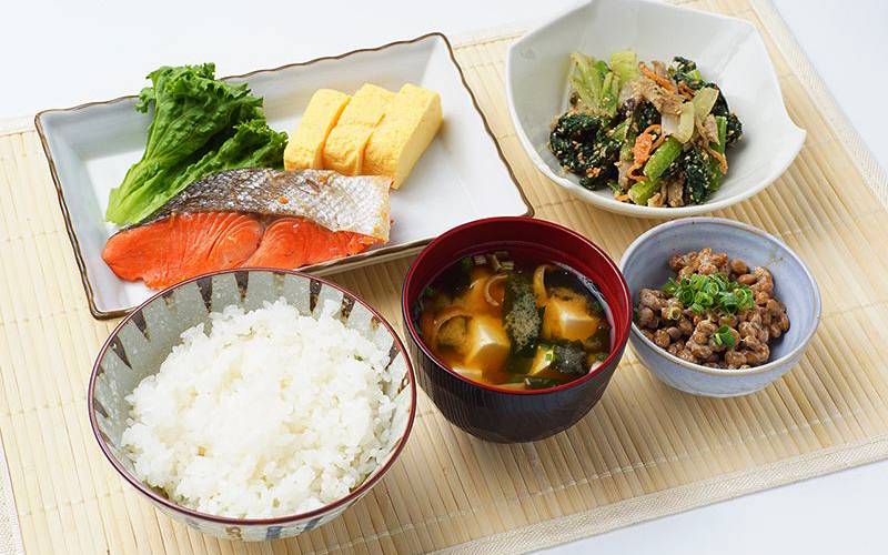 Chế độ ăn của người Nhật xoay quanh những thực phẩm tươi ngon và bổ dưỡng. Bữa ăn hàng ngày của họ thường bao gồm: