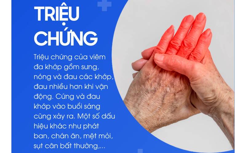 Các triệu chứng của viêm đa khớp có thể đa dạng tùy thuộc vào nguyên nhân và mức độ bệnh, nhưng thường bao gồm: